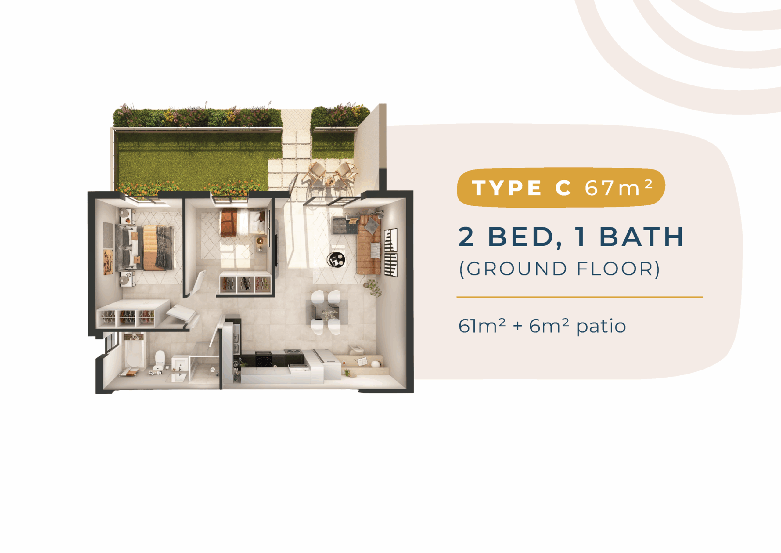 Type C (2 Bed, 1 Bath, Ground Floor)